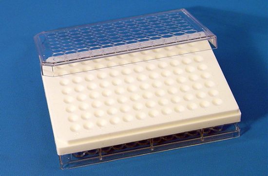 EMS銅網(wǎng)染色盤,硅膠制造,用于電子顯微鏡樣品包埋后的染色和免疫組織化學(xué)操作時(shí),其優(yōu)勢(shì)遠(yuǎn)勝于現(xiàn)行其他染色裝置?;瘜W(xué)蝕刻過程、抗體孵育和染色都能在EMS染色盤小圓錐孔內(nèi)操作。外尺寸長127.5mm、寬85.5mm、厚11.5mm, 8行12列共96個(gè)錐形孔(形狀類似微量滴定板),每個(gè)圓錐孔都是直徑7mm的倒錐形,深2mm,銅網(wǎng)漂浮或固定在其底端。圓錐孔能容納12-60μl溶液??捎肍alcon 3072 Microtest? III 96孔盤做蓋子。