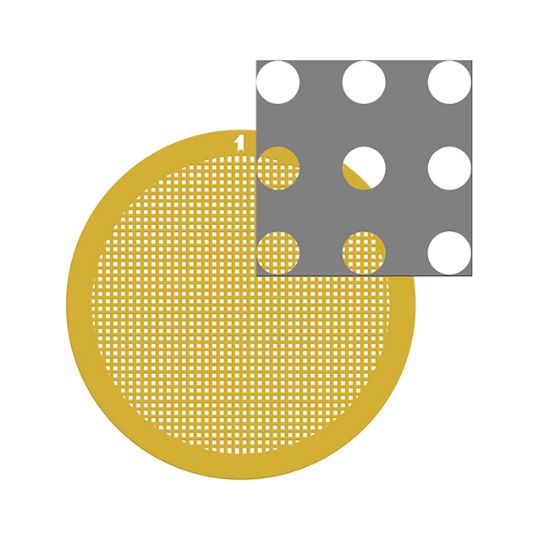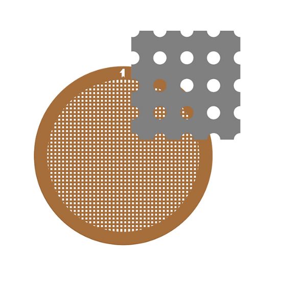 專利技術(shù)制造,超平的碳膜可使待觀察顆粒分散更均勻,為冰層厚度均勻打下良好的基礎(chǔ)。膜上的花樣孔采用深紫外光刻印制技術(shù),確保了孔大小的精確(精確至微米級別);同時確保了孔型的連續(xù)性,精細的制造技術(shù)完全消除了多于的碳和碳膜孔產(chǎn)生的邊角料。